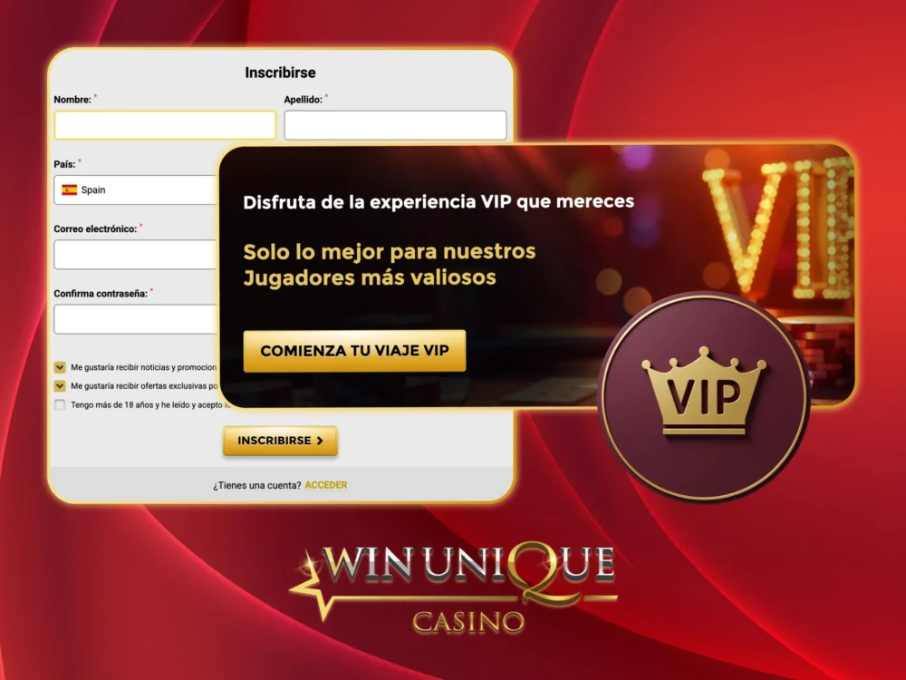 - Crea una cuenta en uniquecasino.com con datos reales.